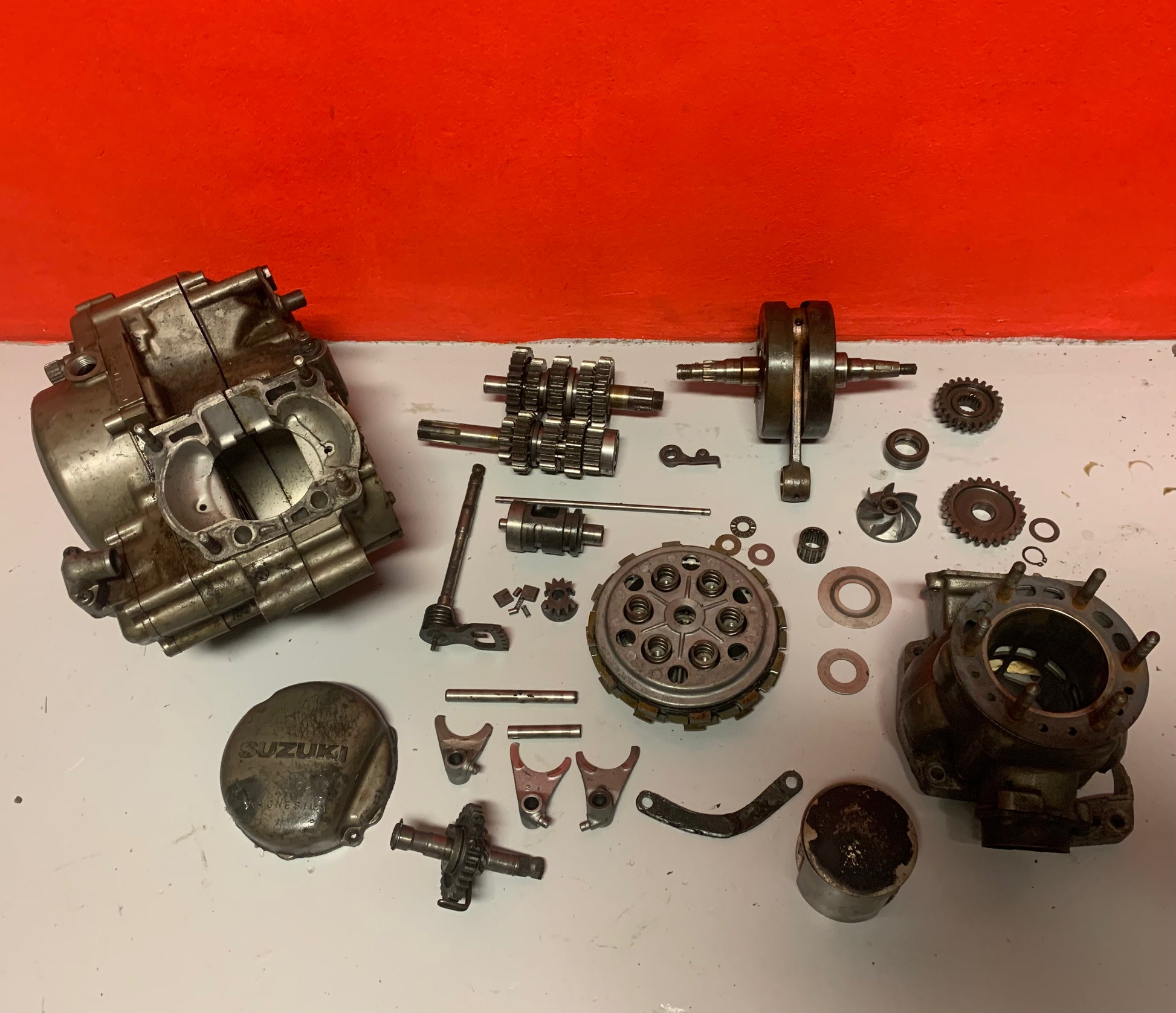 Complete Suzuki RM250F 1985 damaged engine.