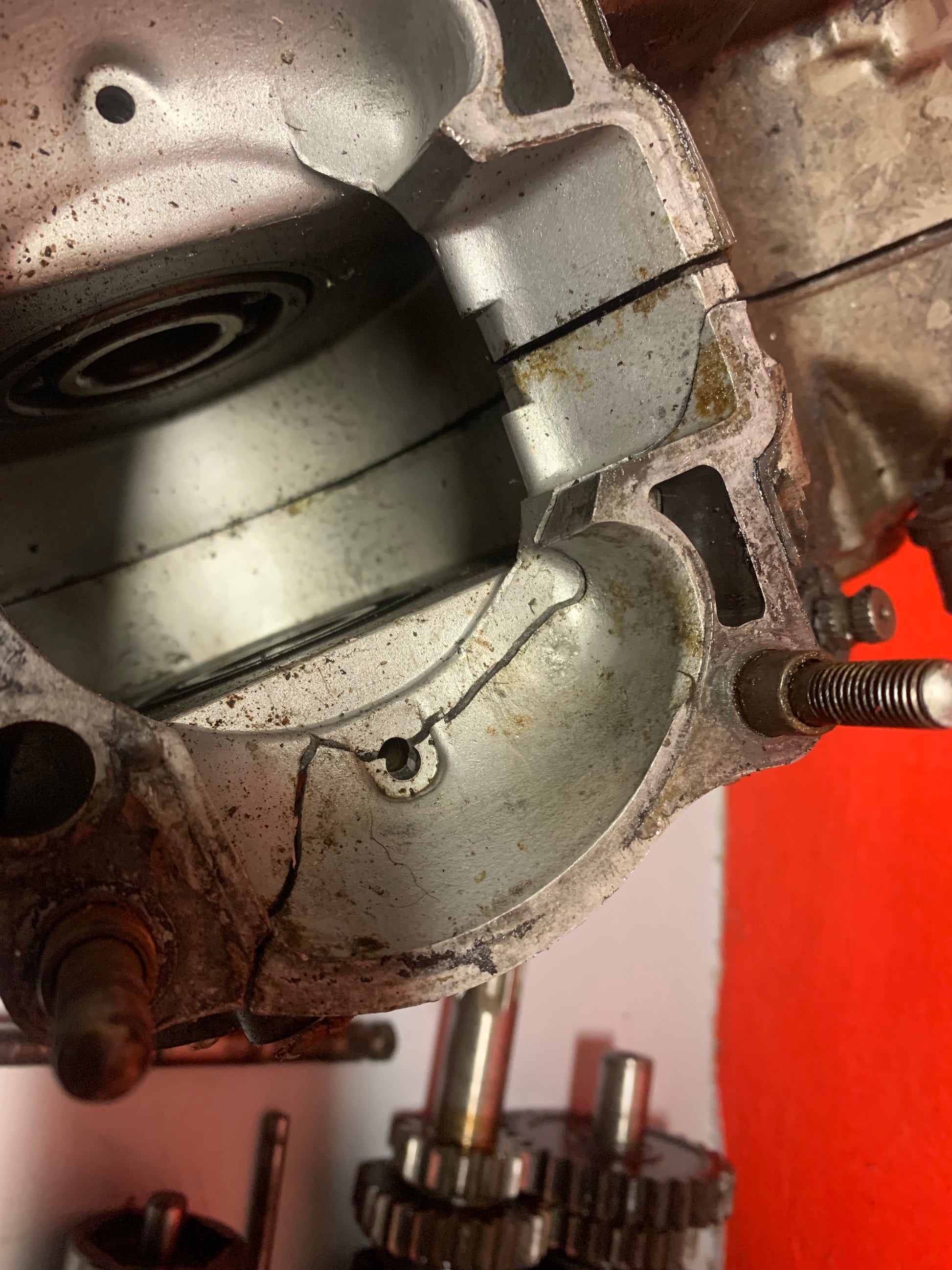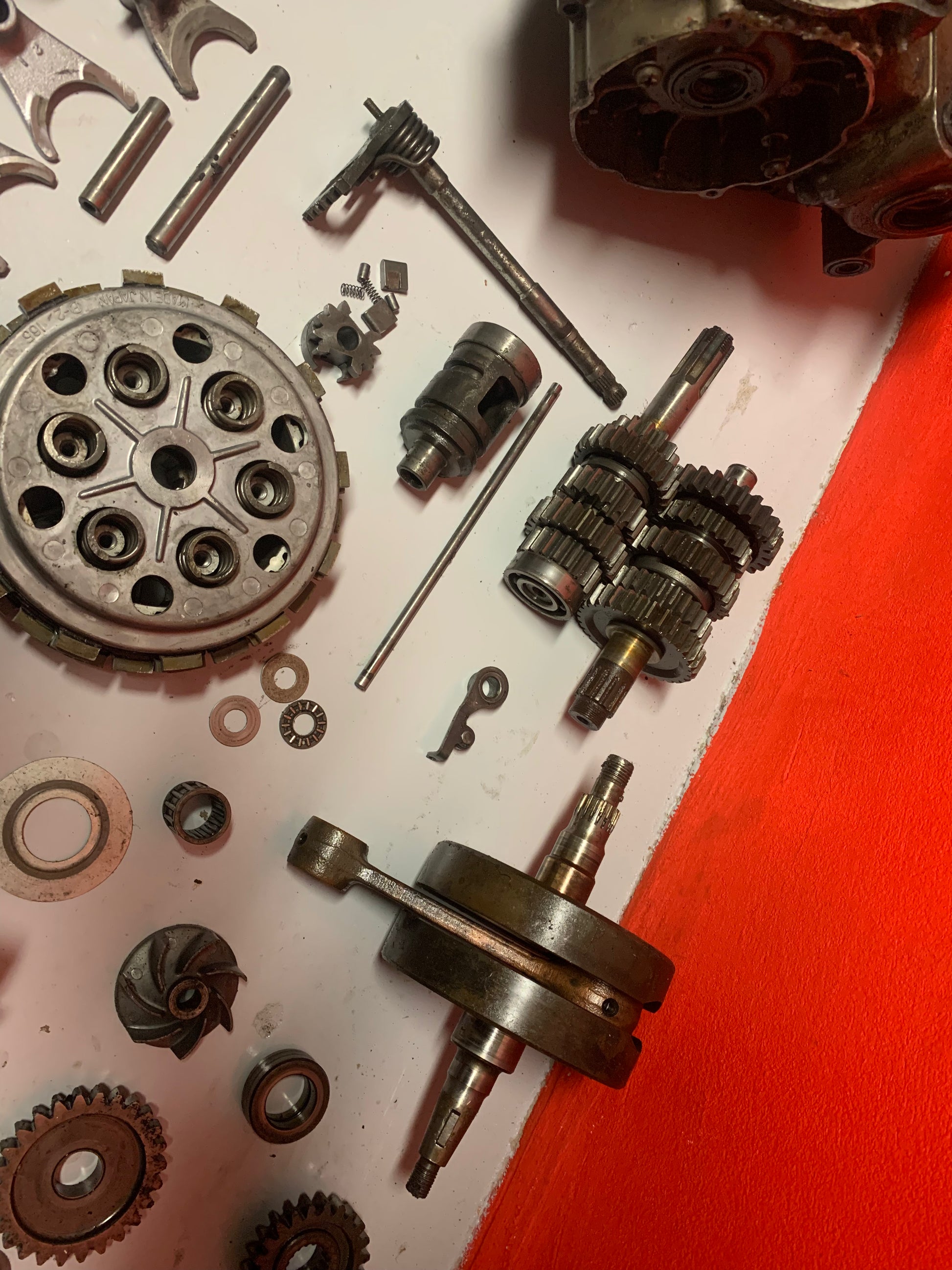 Zo ver als ik kan zien is ie op de koppelingskorf na compleet. Carter en cilinder moeten gelast worden, zie foto’s.