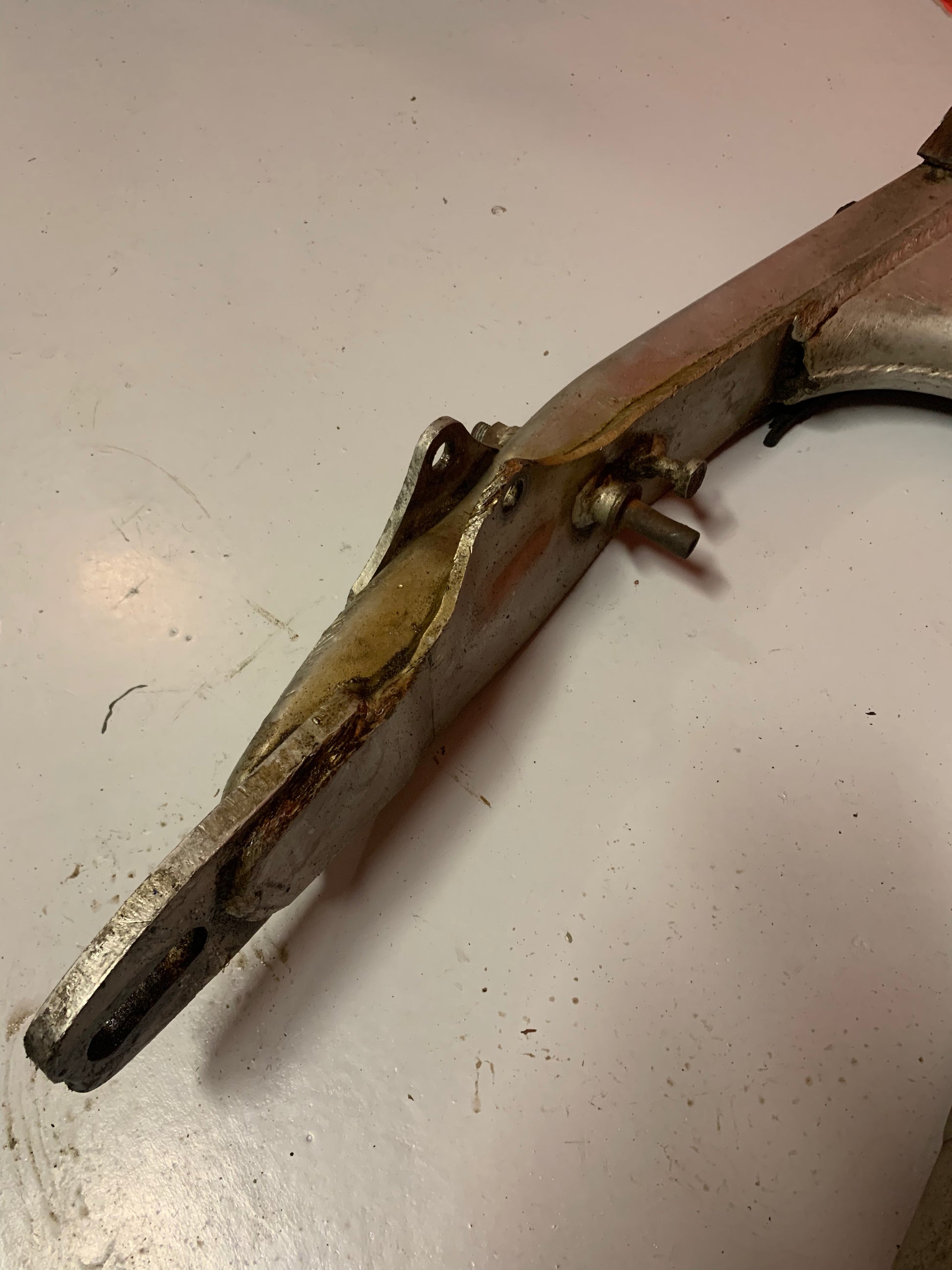 Swingarm. Geen zichtbare scheuren/deuken. Heeft nieuwe lagers nodig.